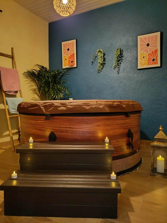 , des lumières tamisées, des bougies et un diffuseur d'huiles essentielles créent une atmosphère apaisante.